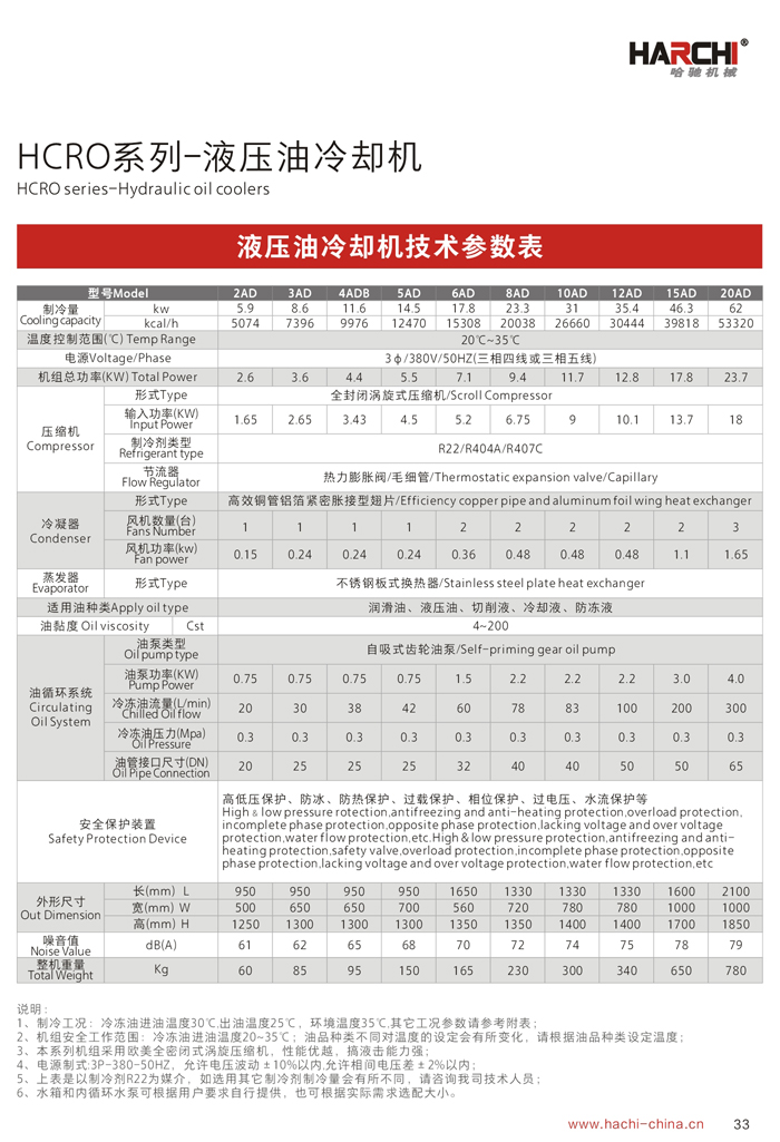 1、制冷能力是在環(huán)境溫度35℃,進(jìn)油溫度35℃,出油溫度30℃,油品為ISO VG32條件下測得。 2、用戶在選擇油冷機(jī)時(shí),必須選擇油液需控制的溫度范圍(1)18℃-25℃ (2)25℃-35℃ (3)35℃-45℃